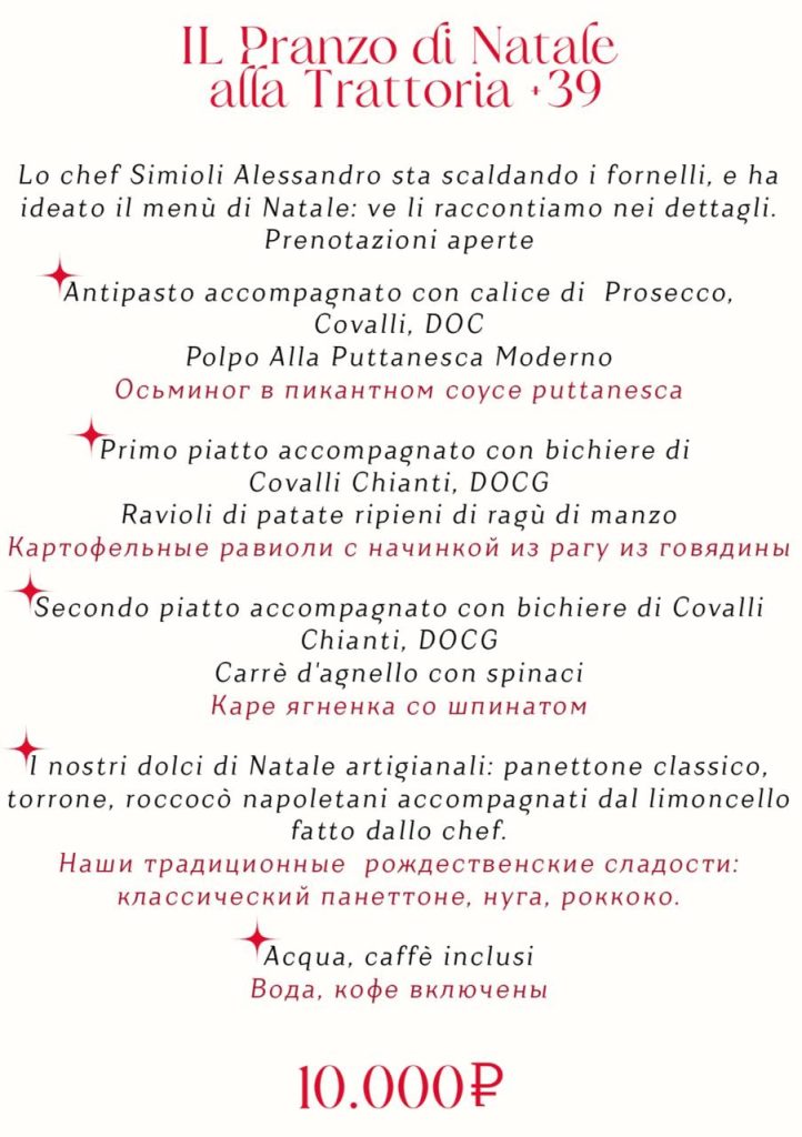 Рождество, каким его знают итальянцы, в +39 Trattoria & Pizzeria на Новой Басманной*
